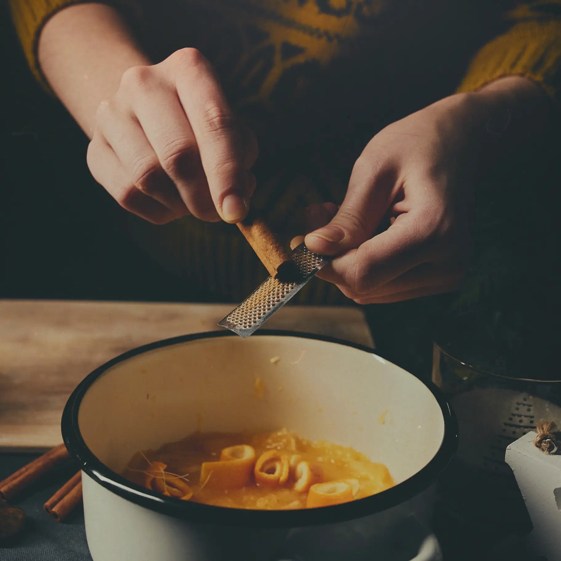 A spirited fragrance that blends the scent of a fresh cool breeze with luscious orange, followed by warm notes of spicy cinnamon, cassia, vanilla, musk, coconut, and creamy tonka beans.